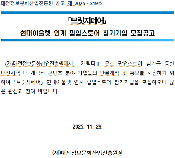 대전정보문화산업진흥원 공고 제 2025-319호