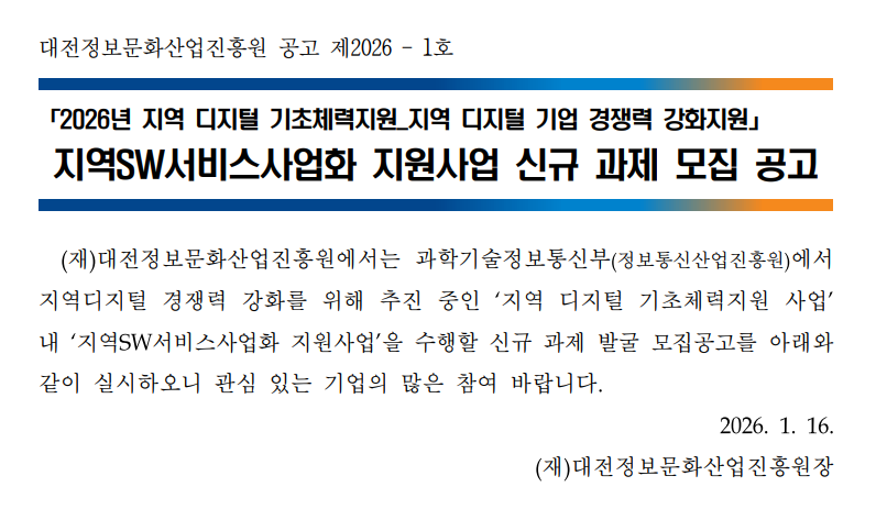 대전정보문화산업진흥원 공고 제 2026-1호